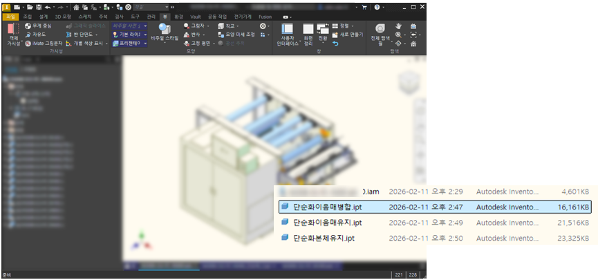 Inventor 단순화 표현 파일 크기 정보